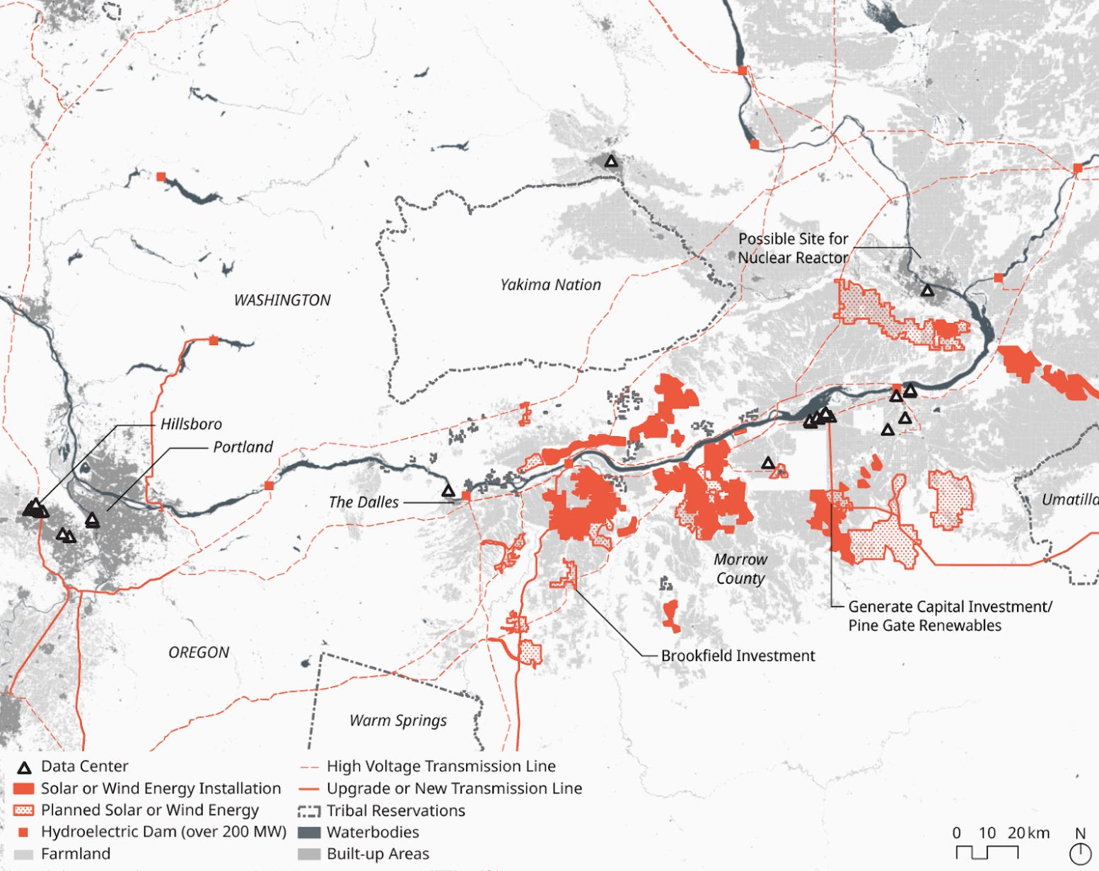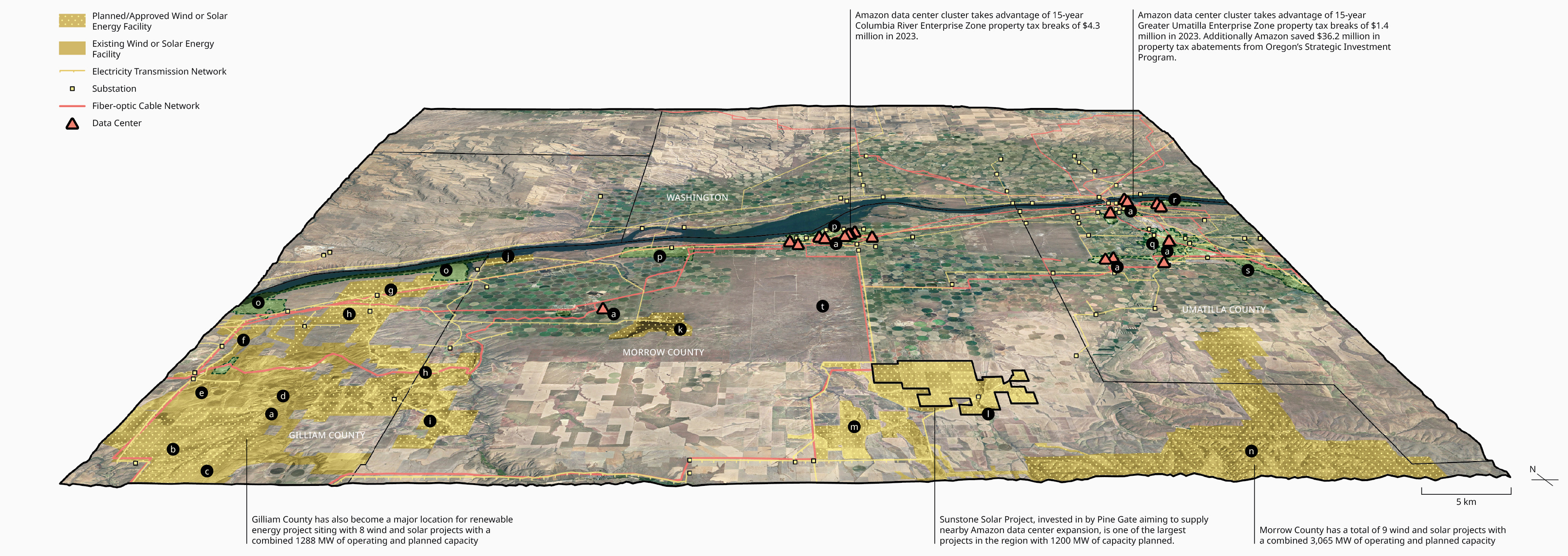 Territoriality of the Morrow and Umatilla County data center cluster and renewable energy infrastructure expansion