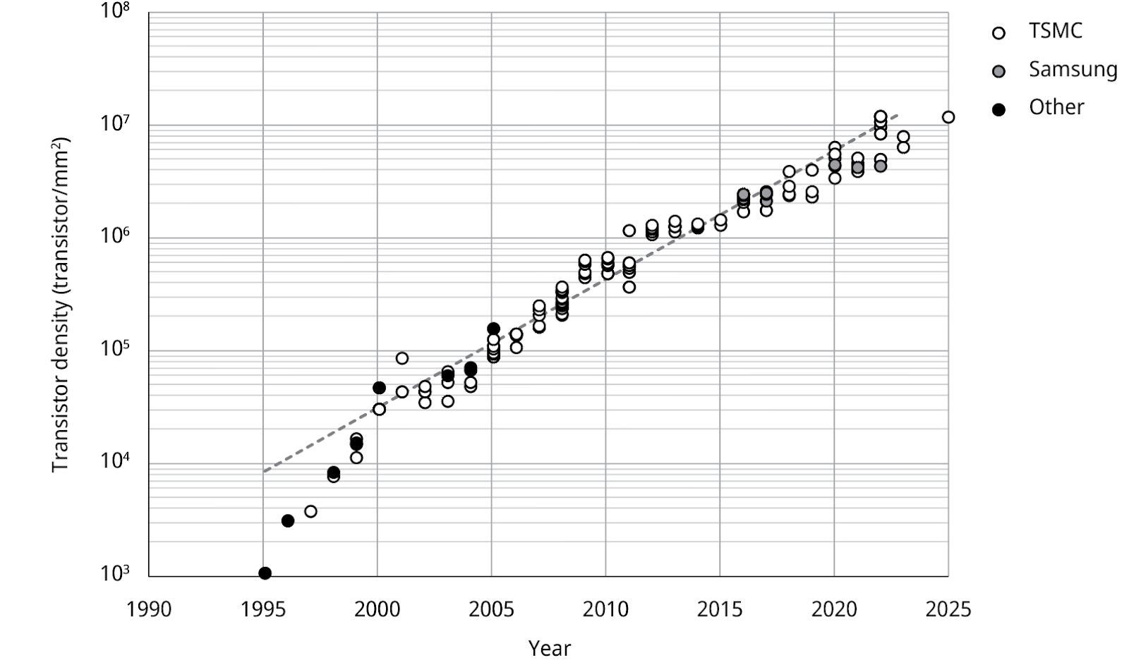 Moore’s Law in GPU Production by Manufacturer 1995 to 2025