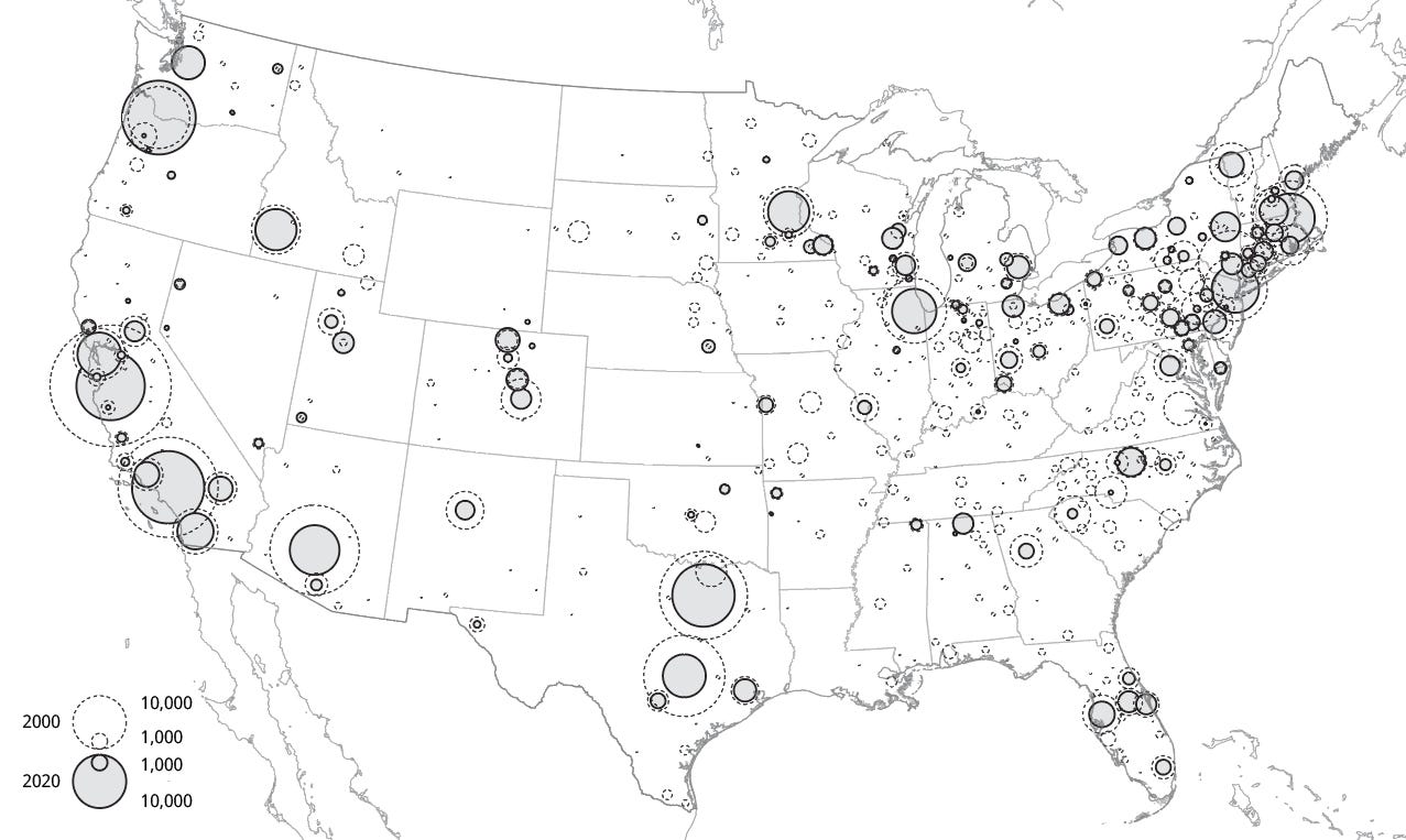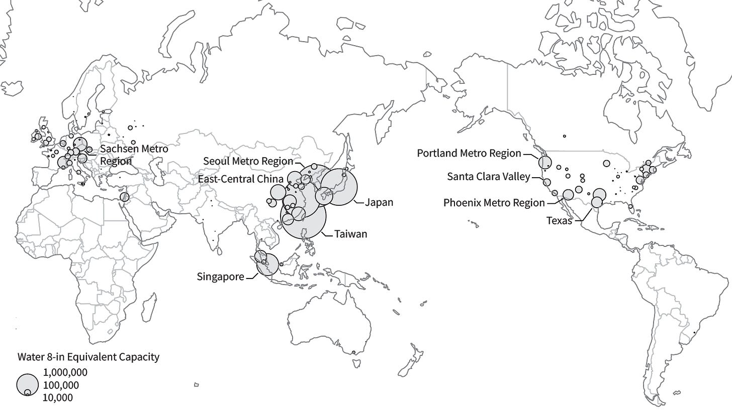 In this environment, offshoring fabrication to Taiwan and South Korea became a rational strategy aligned with financialized imperatives. Between 2000 and 2020, U.S. semiconductor and microelectronics employment (NAICS 3344) shrank by more than 370,000 jobs, reflecting a systemic disinvestment from domestic manufacturing. This offshoring was not inevitable; it was facilitated by policy frameworks and corporate decisions that privileged financial engineering over industrial resilience—a policy event that I’ll cover in more depth in a separate article. In effect, the public funding that once nurtured the industry was subordinated to a political economy in which shareholder value overrode considerations of national industrial capacity. As U.S. firms offshored fabrication, they locked themselves into reliance on an abundance of external suppliers—setting the stage for today’s structural dependence and geopolitical vulnerability. *Patrick McGee’s Apple in China gives an excellent overview of the role Apple played in building Chinese supply chains.