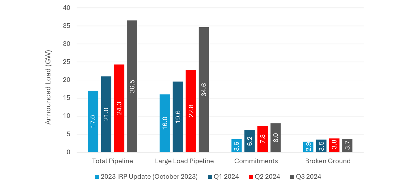 In Georgia Power’s 2025 Integrated Resource Plan, probabilistic hype about data centers is converted into a concrete build-out. Between its October 2023 IRP update and Q3 2024, its projected “Large Load Pipeline” grew from 16 GW to 34.6 GW, with 8 GW now coming from customers that have formally committed. This is a sharp revision from its 2023 plans, with the majority attributed to AI-oriented data centers. To meet this, the near- and medium-term portfolio is anchored in new and extended gas units and legacy coal, supplemented by battery storage, incremental nuclear uprates, hydro modernization, and a largely RFP-driven expansion of solar and wind. At stake is how a highly uncertain wave of AI and data center demand is being operationalized inside the IRP—and, in particular, how Georgia Power’s load forecast and its Large Load Realization Model are used to justify this new tranche of infrastructure.